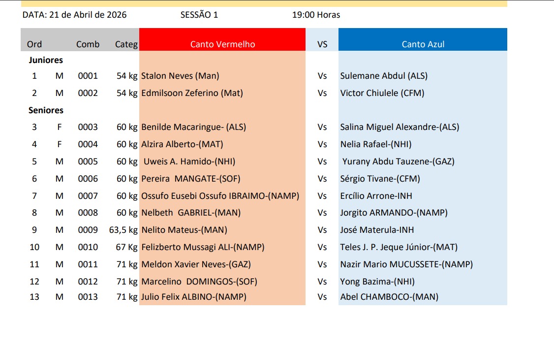 Os Combates do Campeonato Nacional de Boxe edição 2026, começam esta terça-feira (21). Os duelos terão lugar no pavilhão do Estrela Vermelha, na Cidade de Maputo.