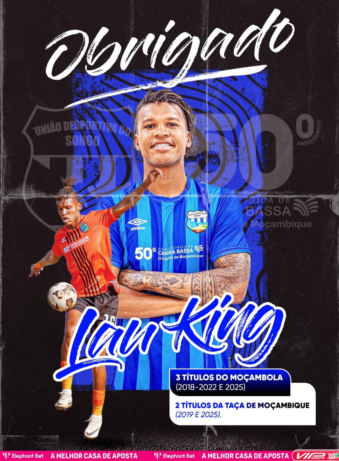 “A União Desportiva do Songo manifesta o seu profundo reconhecimento pelo profissionalismo, dedicação e sentido de responsabilidade demonstrados ao longo do teu percurso no clube. A tua presença e contributo foram importantes para a consolidação do projecto desportivo, refletindo-se no desempenho colectivo e nos resultados alcançados. Com trabalho, compromisso e respeito pelas cores da UDS, deixas uma marca que passa a integrar a história da instituição. No futebol existem ciclos, e mais importante do que o tempo é o impacto. Os feitos alcançados e o legado deixado permanecem vivos e nunca serão esquecidos. O clube deseja-te sucesso nos próximos desafios” lê-se na publicação feita referenciando a saída de Lau King.
